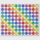 Abstrato digital de bolinhas coloridas arco-íris esboçadas em preto contra fundo branco.
