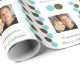 Um padrão de bolinhas e distribuição vertical em tons de azul-aqua e marrom-chocolate formam um fundo para modelos de texto e fotos que podem ser personalizados para se adequarem a sua ocasião especial. FOTO - Substitua-o pelo do casal de noiva, de um amigo próximo, de um membro da família ou de um colega de trabalho. WORDING - Personalize-o.