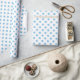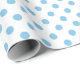 Um papel de embalagem construído com um padrão de bolinhas azul claro com uma distância média entre os pontos sobre um fundo branco. Personalize o fundo branco entre outras opções.
