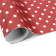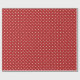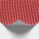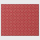 Bolinhas brancas sobre fundo vermelho com efeito de costura colado.