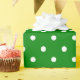 Um papel de envolvimento construído com um teste padrão de bolinhas branco com uma grande distância entre os pontos em um fundo verde. Personalize o fundo verde em uma forma facil.