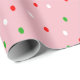 Padrão de bolinhas em vermelho, branco e verde em um plano de fundo rosa