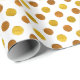 Um padrão simples de bolinhas neutro em termos de gênero, com cores brancas e douradas, adequado para todas as ocasiões desde o aniversário, o Natal, casamentos, chás de fraldas e muito mais! Versátil o suficiente para lojas, negócios online e embrulhamento profissional de presentes. Outras cores estão disponíveis em nossas coleções!
