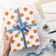 Papel De Presente Bolinhas Laranja de Fundo Branco