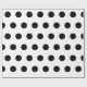 Bolinhas pretas em papel de enrolamento branco. Círculos redondos sobre fundo branco neste papel de embrulho utilizado para embrulhar presentes.