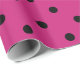 Presente papel de embrulho de uma bolinhas preta sobre um fundo rosa quente. Perfeito para aniversários, casamentos e batizações.