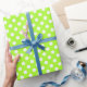 Bolinhas de média Bolinhas - O papel personalizado de embalagem de presente com cor verde-amarela e cor de corte verde para complementar cor de corte com cores verdes será excelente para todos os tipos de utilização, incluindo projetos de artesanatos, presentes de Natal, presentes de férias, papel de revestimento de prateleiras ou projetos de artesanatos. Essas bolinhas de designer que podem ser descritas como médias, padrão, normal, normal, de médio, de médio, no meio, os polkadots do dia a dia são elegantes, chic, giro, moderno, contemporâneo, eterno, retrô e clássico ao mesmo tempo!
