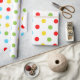 Desdecorar presentes com este adorável papel de embrulho de bolinhas popular, este design na moda fofo e moderno apresenta bolinhas amarelas, verdes, azuis e vermelhas coloridas sobre fundo branco. Escolha o seu hoje!