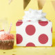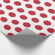 As bolinhas vermelhas cobrem um fundo branco. O papel é grande por o tempo do Natal ou em qualquer altura que!