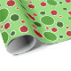 Bolinhas verdes, vermelhas e brancas em papel de embalagem de Natal.