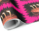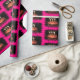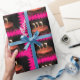 Uma fotografia de um Livro de Bolo de Aniversário brilhante e colorido. Com um quadro cor-de-rosa em volta de um Bolo com três Velas flamejantes. Isso é no Wrapping PAPER.