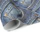 Seja à moda em seu grupo de amigos com este papel de envolvimento que caracteriza uma foto anca de um bolso genuíno de calças de ganga.