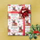 O padrão repetido neste papel de embrulho de Natal inclui uma imagem de um adorável Bulldog francês marrom vestindo um cachecol vermelho e sentado ao lado de um pacote de presentes. O texto vermelho e verde diz MERRY CHRISTMAS" e "Feliz ano novo" com sua assinatura personalizada abaixo. Outras imagens incluídas no padrão incluem flocos de neve decorativos vermelhos e canas doces.