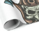 Um rosto assustador em uma máscara com fogo e resgate ao seu redor. Este design parece realmente eficaz nestes papéis de enrolamento
