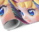 Uma pintura detalhada da cara de um boneco de acção do anime.