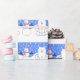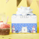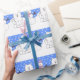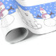 Samoyed bonito e boneco de neve em um fundo nevado. Grande maneira de envolver seus presentes.