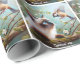 Um gato siamês de cabelos longos assiste uma mosca-pardal neste design vibrante moderno.