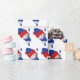 Homem de neve de Natal vermelho e azul em flocos de neve em fundo branco. A cor de fundo pode ser alterada.