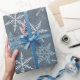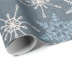 Este bonito papel de embrulho de Natal agradará aos seus amigos e família esta temporada de férias quando eles virem seus belos presentes enrolados. Um fundo texturizado em azul escuro complementa um padrão com flocos de neve azuis e brancos em várias variações. Um presente perfeito para crianças ou um novo bebê.