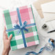 Papel De Presente Bonito Pastel Rosa E Xadrez Verde