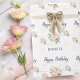 Bonito Rosa, Feliz Aniversário, Papel de Acondicionamento de Feliz Aniversário, Os florais cor-de-rosa suave e a tipografia bonito tornam este papel de embrulho feminino extraordinariamente especial. Você pode personalizar a saudação e o nome para que isto funcione em qualquer ocasião especial.