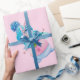 Celebre o Natal com seu pequeno Natal nesta temporada de festas e dobra seus presentes especiais com este adorável presente de Natal rosa e azul de boneco de neve. Esta design apresenta um doce padrão de boneco de neve vestido de chapéu de inverno e cachecol com cores rosa e azul. O fundo é um rosa claro e macio.