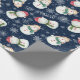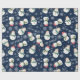 Dois bonitinhos bonitinhos de neve estão nesta maldita folha de papel de embrulho de Natal. Um adorável boneco de neve tem o chapéu de Papai Noel enquanto o outro está preso no chapéu de atirador. Flocos de neve brancos e neve completam o padrão de feriado.