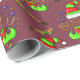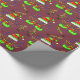 Um padrão fofo de elfos de Natal com chapéus de Natal verdes e vermelhos gigantes e calçados de elfo, flocos de neve azuis e estrelas de ouro, sobre fundo de cor de ameixa. Este papel de embrulho do elfo certamente adicionaria um toque de acabamento festivo ao seu presente embrulhando estes feriados de Natal.