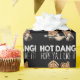 Botas marrons russas de vaqueiro com papel de prenda com papel de presente com "Hot Dang! Espero que vocês gostem!" na fonte do giz é divertido e memorável!