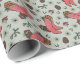 Um papel festivo de embrulho de natal ocidental, que contém ilustrações desenhadas à mão de botas de vaqueira, cones de pínus e bagas ocas de inverno, com fundo verde.