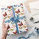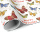 Lindas borboletas brilhantes em várias cores voam sobre a superfície deste papel embrulhado de presente de aniversário bonito. É duro ver todos os detalhes, mas o papel está sobreposto com "poeira" de brilho dourado e pequenas estrelas douradas aparecem entre as imagens da borboleta. Seu texto personalizado está em vermelho, e ele é facilmente personalizado ou alterado para qualquer coisa que você gostaria. Muito bonito para crianças ou aniversários adultos.