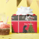 Um collie da fronteira está pronto para o Natal com sua bola vermelha.