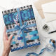 Bordado tradicional azul de Novostavtsi, uma vila na região de Lviv de Ucrânia.