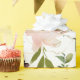 Embalagem para presentes com flores de pénia e folhas de eucalipto para bebês em acentos de burgundy, vinho, azul empoeirado e rosa-rosado.