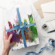 Impressão de arte em aquarela do horizonte de Boston, Massachusetts, Estados Unidos