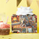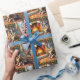 Papel De Presente Boston Terrier Fireplace with Christmas Lights