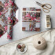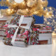 Boston Terrier olha para a árvore de Natal possivelmente contemplando amantes de cachorros fofinhos que embrulham papel para os feriados