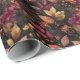 Papel de embrulho elegante em burgundy, dourado e preto com motivos botânicos. Perfeito para aniversários, casamentos, chá de noiva, Dia de Ação de Graças, outono, inverno e Natal.