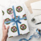 Celebre o feriado com o papel de embrulho da coroa festiva de Natal! Este delicioso artigo mostra uma ilustração vibrante de uma coroa de Natal verde decorada, com um adorável boxer vestindo um lindo chapéu vermelho de Papai Noel no centro. Perfeito para amantes de cães e festas, este design único adiciona um toque festivo à sua embalagem de festas.