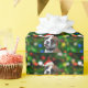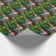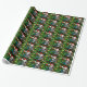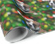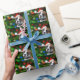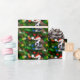 Cachorro branco e desfiladeiro veste um chapéu de Papai Noel muito pequeno e fica bonito com luzes de Natal brilhantes no cão de fundo amante papel de embrulho de Natal
