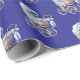 Boho blue baby carriage wrapping paper. Ideal for baby showers! A deep blue background allows the light blue pram to pop.