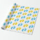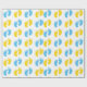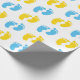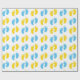 PAPEL DE PRESENTE BRANCO COM PÉS DE BEBÊ AZUL E AMARELO