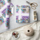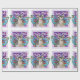 Gato Ninja de Sphynx com as asas feericamente no papel de envolvimento roxo das flores.