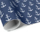 Um papel de envolvimento original que caracteriza um marinho elegante e um teste padrão branco da âncora.