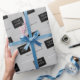Empacotando papel rolante com seu logotipo e site ou mídia social. Rolos de papel de embalagem de promocional em preto.