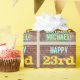 Esta divertida design de papel embrulhado com tema de aniversário apresenta uma mensagem como "FELIZ 23º ANIVERSÁRIO, MICHAEL!", onde o nome pode ser personalizado. O fundo apresenta uma representação de uma parede de tijolos constituída por alguns tijolos de cor castanha avermelhada. O texto de mensagem personalizável apresenta cores como azul, amarelo e verde, e tem uma aparência inspirada pela do grafite pintado. Talvez se possa utilizar papel de embrulho como este para embrulhar presentes de aniversário a quem comemora o seu vigésimo terceiro aniversário. [~Z0000274]
