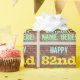 Este divertido design de papel de embrulho com tema de aniversário apresenta uma mensagem como "FELIZ 82º ANIVERSÁRIO, NOME AQUI!", onde o nome pode ser personalizado. O fundo apresenta uma representação de uma parede de tijolos constituída por alguns tijolos de cor castanha avermelhada. O texto de mensagem personalizável apresenta cores como azul, amarelo e verde, e tem uma aparência inspirada pela do grafite pintado. Um papel de embrulho como este poderia talvez ser usado no embrulho de presentes de aniversário que são dados a alguém que comemora seu oitenta e segundo aniversário. [~Z0000274]
