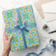 Papel De Presente Bright Geometric Kaleidoscope Pattern Blue Green