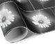 Flor de cosmos brancos iluminada sobre fundo preto.