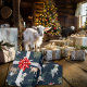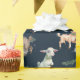 Cabras de aquarela adoráveis saltando e tocando - sobre fundo azul-da-meia-noite mudo com fitas e arcos vermelhos, grampos de pínus e brilhos para melhorar o aspecto festivo - - A © gavageira GetYerGoat™ original -